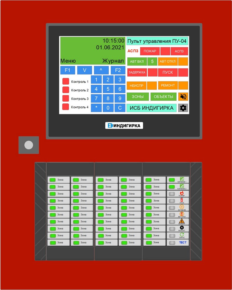 В состав концентратора входит: графическая сенсорная панель оператора, блок обобщенных индикаторов, блок зональных индикаторов, управляющий контроллер (БЦП).